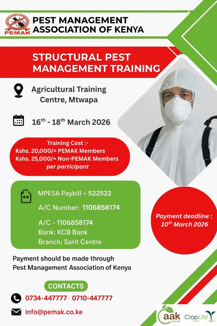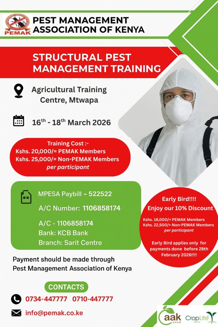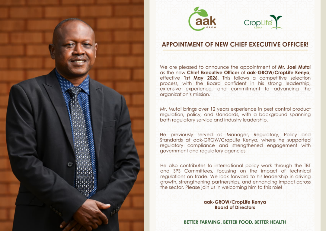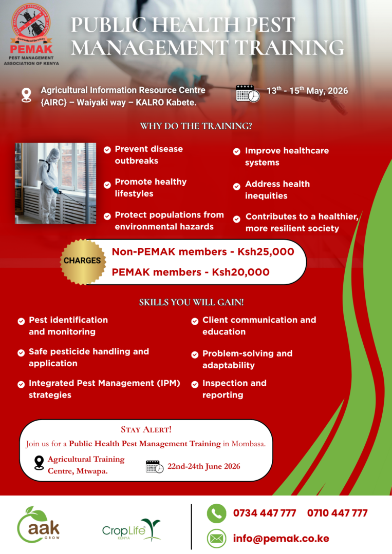 Championing Sustainable Agriculture and Food Security aak-GROW is Kenya’s leading organization uniting stakeholders in the pest control sector, including producers, manufacturers, importers, formulators, re-packers, distributors, and users of pest control products.